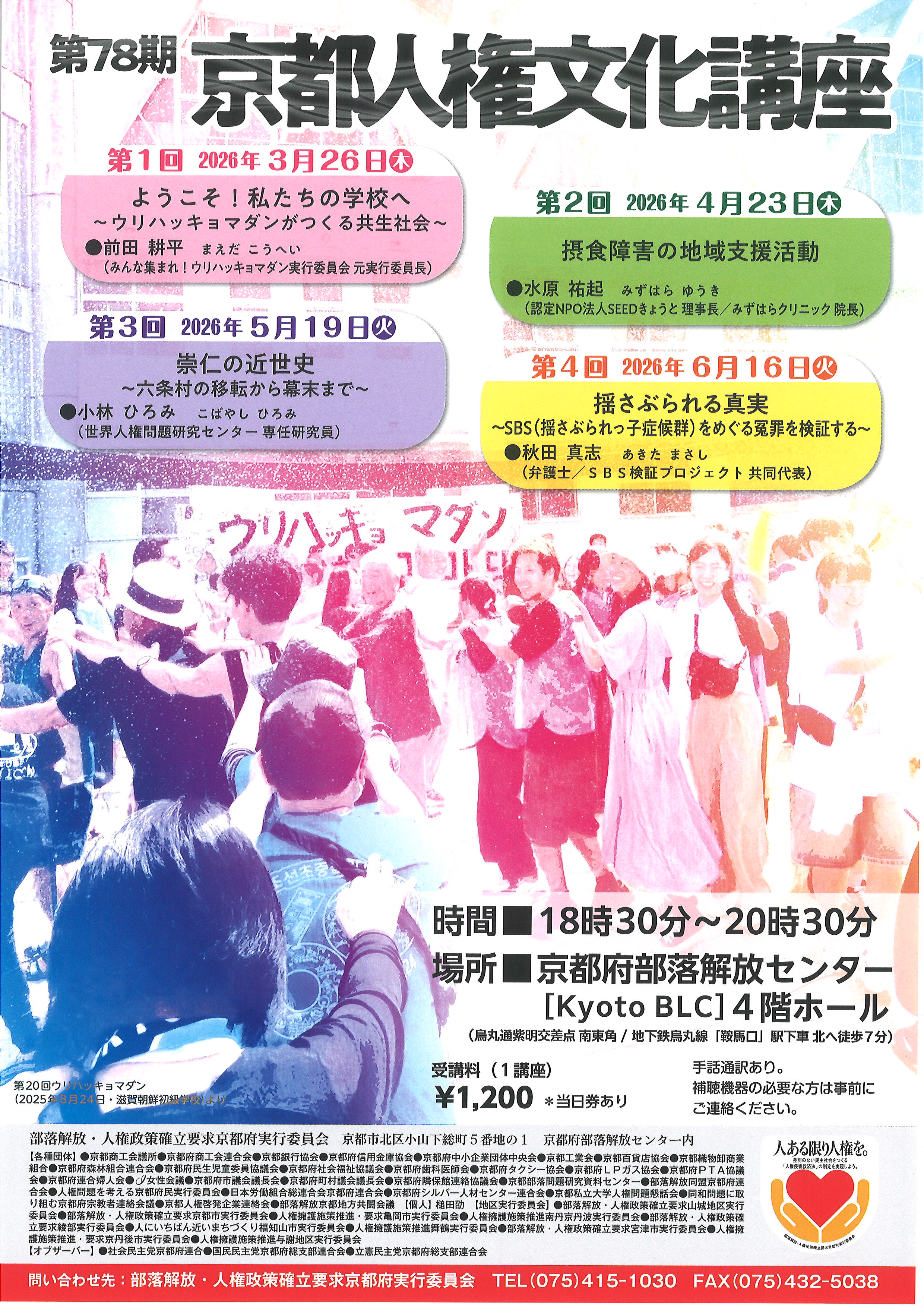 第78期京都人権文化講座(2026年3月~)のお知らせ